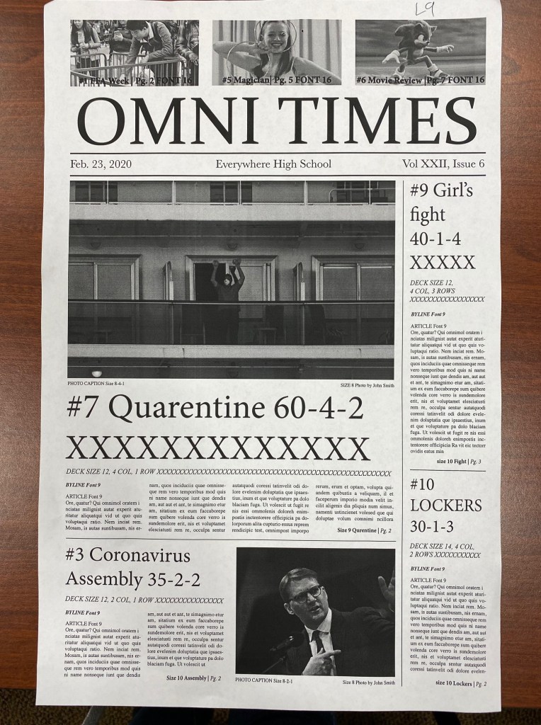 • Dave Lyons, Rosary HS: newspaper layout and proctoring